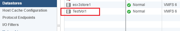 We should now be able to see the datastore on our ESXi host. ย We should be able to rescan our other hosts and have the datastore appear.