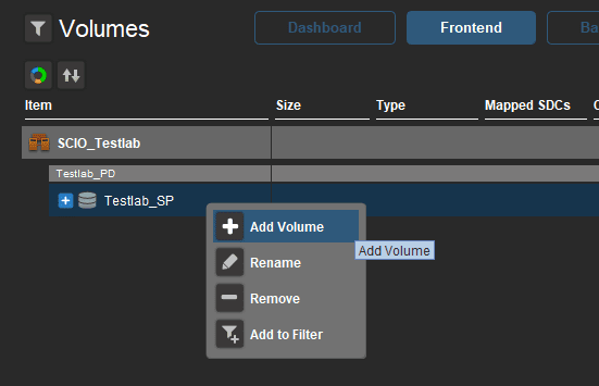 We can also perform this same operation using the EMC ScaleIO Windows client. ย We can navigate toย Frontend >> Volumesย >> Add Volume.