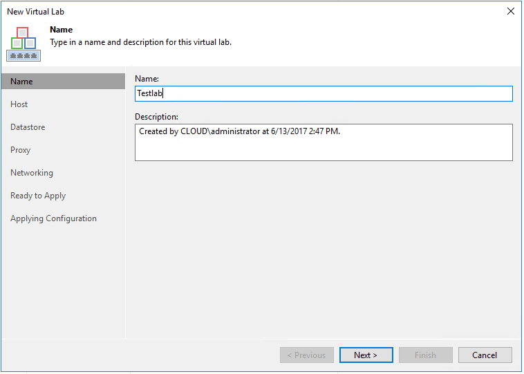 Next, we name the virtual lab. Â Note the name you configure here is the name of the router appliance that gets added to your VMware inventory.