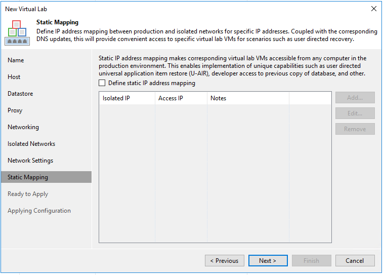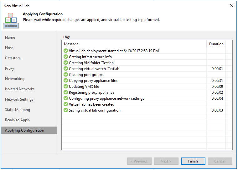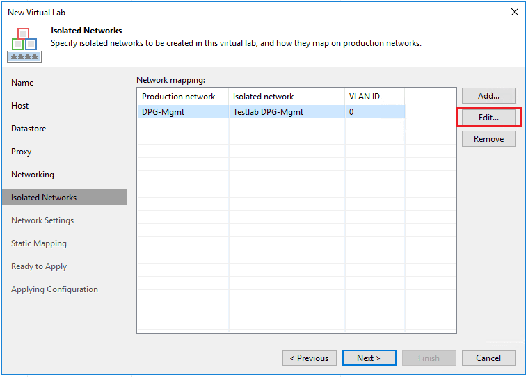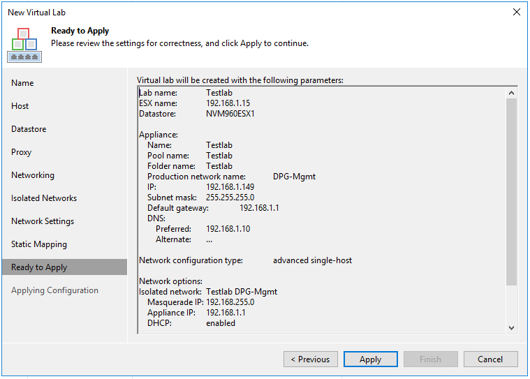 The process to Create Veeam Isolated Sandbox Virtual Lab using the Virtual Lab functionality is straightforward.  The resulting router already has the appropriate netmap and masquerade rules configured.  Using this functionality we can provision a lab network fairly quickly even to be used outside of Veeam purposes.