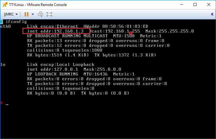 I quickly provisioned a TTYLinux appliance to test pings. Â The IP it grabbed on the “pseudo” production “isolated” interface was 192.168.1.3.