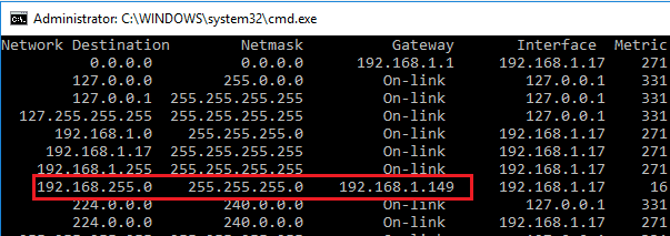 To test connectivity, I manually added a route on the test workstation to point to the production IP of the provisioned router. Â The static route directs any traffic for the masquerade subnet to the router IP.