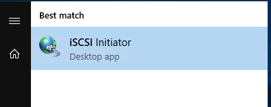 In Windows Server 2016, you can find the iSCSI Initiator application by clicking the Windows button and then starting to type iSCSI to initiate the search. It should populate. However, you can also launch the application by simply typing iscsicpl.exe in the run or search menu.