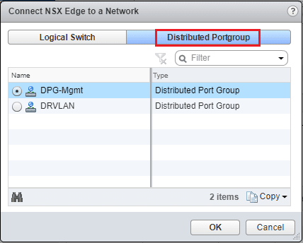 Here I am selecting aย Distributed Portgroup option and choosing theย DPG-Mgmt port group.