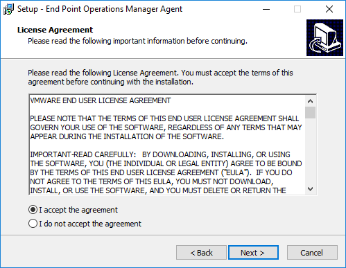 After downloading the vRealize Operations Manager 6.6 Endpoint agent from VMware, we simply kick off the install. ย It is basically a “Next, next, finish” affair with populating a few entries.