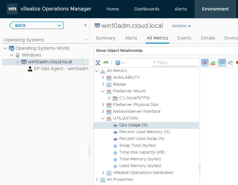 You will eventually see your agent data populated. ย If you look atย All Metrics you should be able to see data populate about your file system, CPU, processes and other valuable information about the guest operating system in the virtual machine.