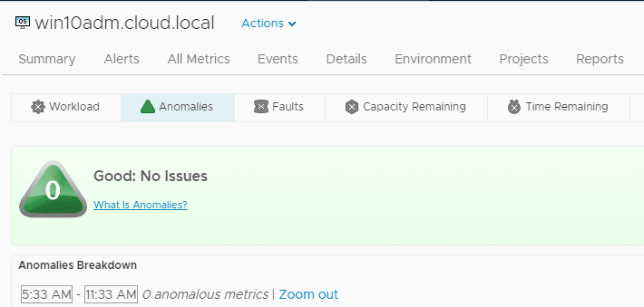 Looking at any anomalies on the virtual machine. ย This VM is in a healthy state with no issues to report.