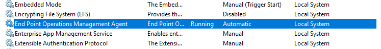The installation will install a Windows service calledย End Point Operations Management Agent that is set to startย Automatically.
