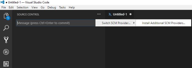 By default, out of the box, Visual Studio Code is integrated with Git without any extensions installed, etc. ย However, you do need to install Git on your workstation for it to integrate with it. ย Below is the Source Control option before having Git installed.