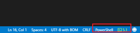 One thing that was a bit non intuitive to m was that I needed to select PowerShellย as the language I was working with. ย This is the case if you are simply beginning a new file that has no extension as of yet. ย I noticed that I had no PowerShell intellisense when I started and took a bit to figure out why. ย Click the language at the bottom right hand corner of the Visual Studio Code window.