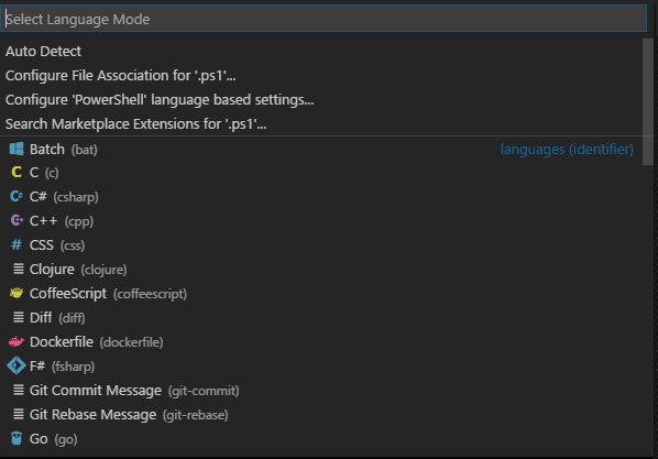 It will launch the Select Language Mode window. ย Simply type PowerShell here or scroll down to find it. ย After selecting PowerShell, Intellisense should work as expected. ย This will be on by default if you open aย .PS1 file.