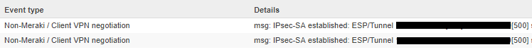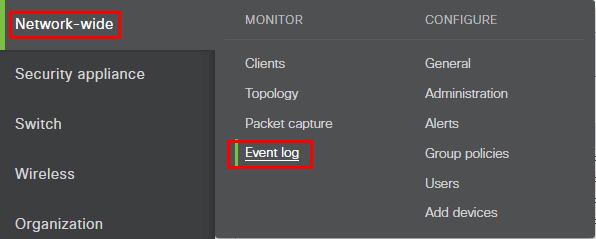 To check the Meraki logs, look at theย Security appliance >> Event log.