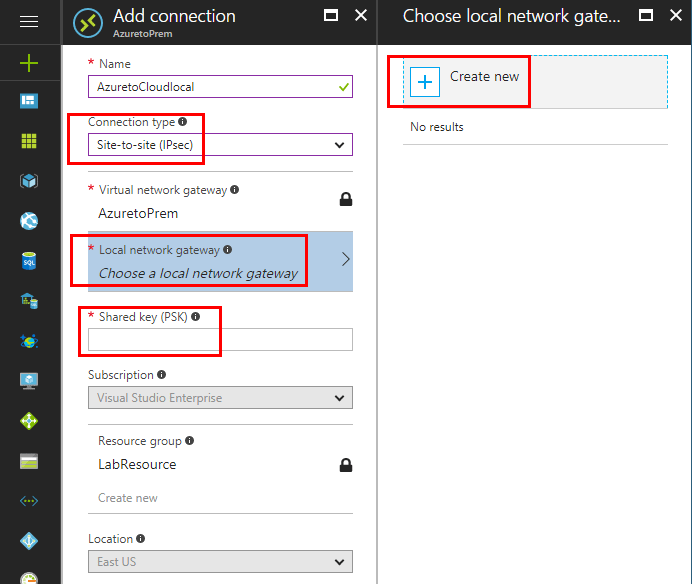 Setting up the local network gateway is straightforward. ย We simply need to provide a name and IP Address. ย Also, configure the local on premiseย Address space that you want to connect with the local network gateway.
