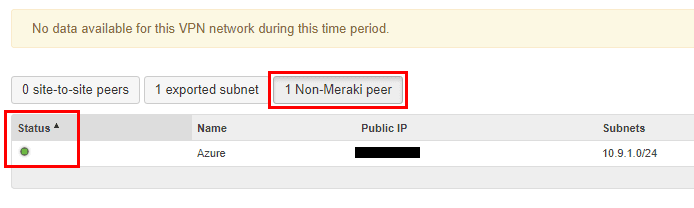 Click theย Non-Meraki peer button. ย You should see a “green” light indicating the VPN is successfully established.