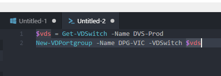 Using Visual Studio Code here, an example of how we can create a new Distributed Port Group for VIC purposes.