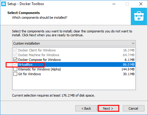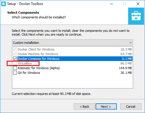 On the select components screen, I wanted to show this as it was a slight little bump. ย The installer wants to installย VirtualBox by default, however, you can’t uncheck it as it is greyed out. ย Since I didn’t want to install VirtualBox, I had to work around this.