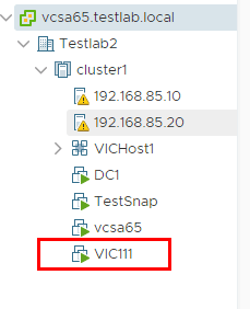Once the appliance is deployed, we will see the VM show up as the name we chose in the appliance deploy.