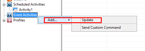The event activities are setup in the same way as the Scheduled activities.ย You can right-click on the Event Activities menu option in the ThinMan console.