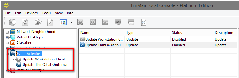 The Event Activities execute a command when a certain event happens.ย This provides powerful use cases since you can โlinkโ an event with an action.ย A typical use case might include a device update (activity) that is prompted by a device reboot (event).