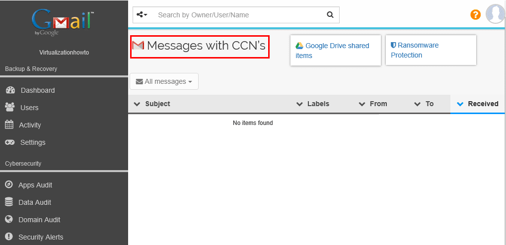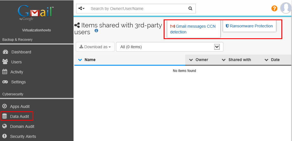 Under the Data Audit we can see any items that might be shared with 3rd-party users as well as credit card number detection and ransomware protection.