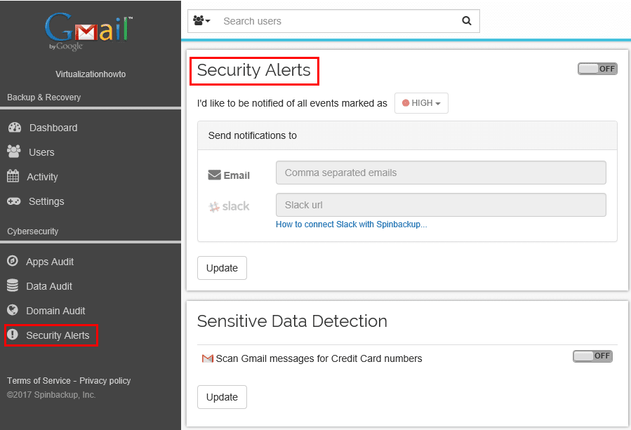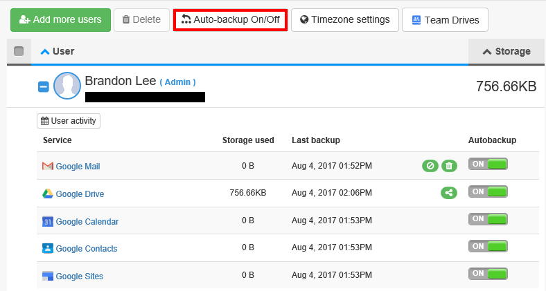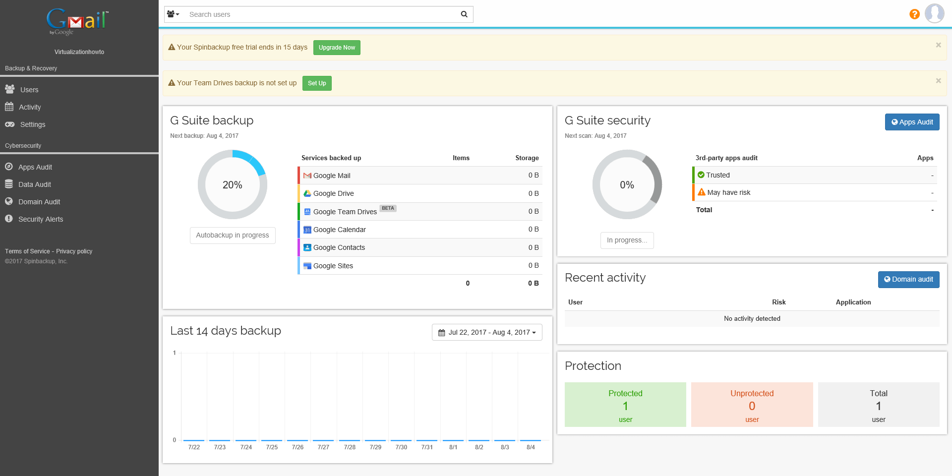 As mentioned, the dashboard of the Spinbackup interface is extremely well designed and arranged in such a way that all the important information you need to stay on top of your G Suite backups and security is easily viewable.