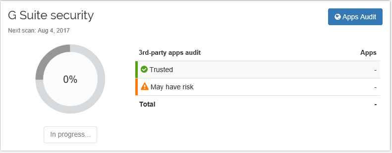 The G Suite Security pane shows any potential security threats coming from 3rd-party apps that have been installed in the G Suite organization.