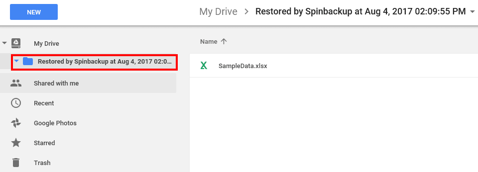 After the restore is completed of the selected file, as we see, we have the “Restored by Spinbackup” folder created and it contains the restored version of the file we chose to restore.