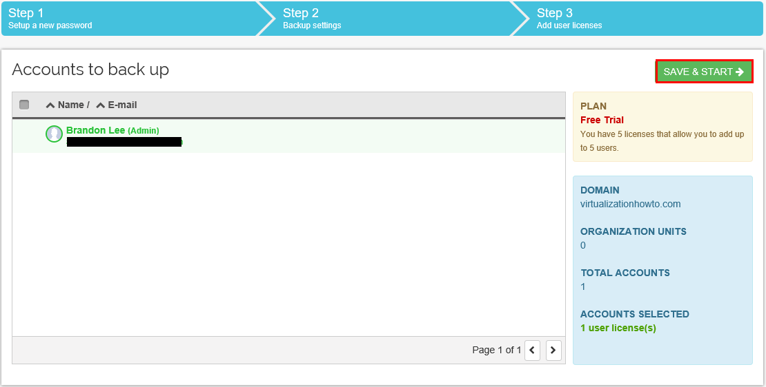 After configuring our backup settings, we simply Save & Start to begin using Spinbackup as well as be taken to our Spinbackup dashboard.