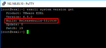 Verify the ESXi 6.5 Update 1 host version