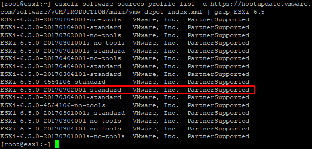 esxcli software sources profile list -d https://hostupdate.vmware.com/software/VUM/PRODUCTION/main/vmw-depot-index.xml | grep ESXi-6.5.0