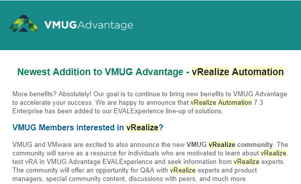 VMUG Advantage adds vRealize Automation 7.3 Enterprise