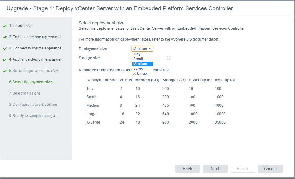 VMware VCSA 6.5 Upgrade no Tiny or Small Option
