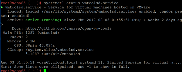 Checking the status of Open VM Tools in VCSA 65: