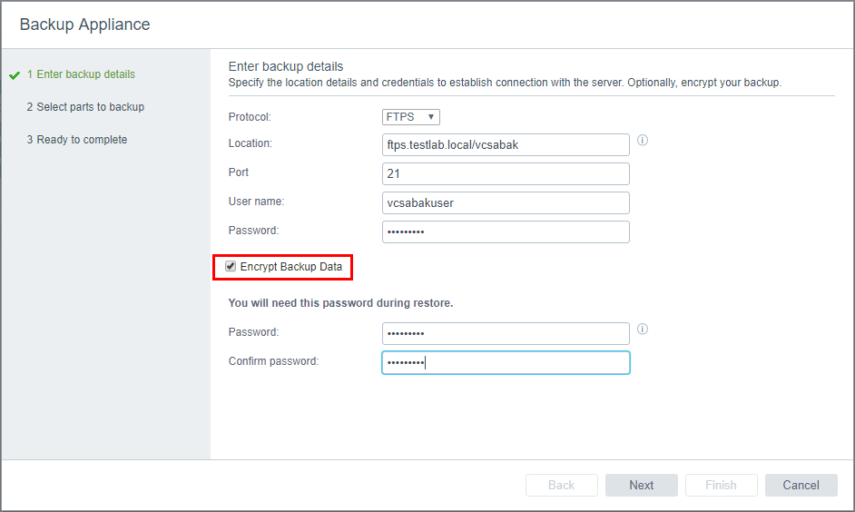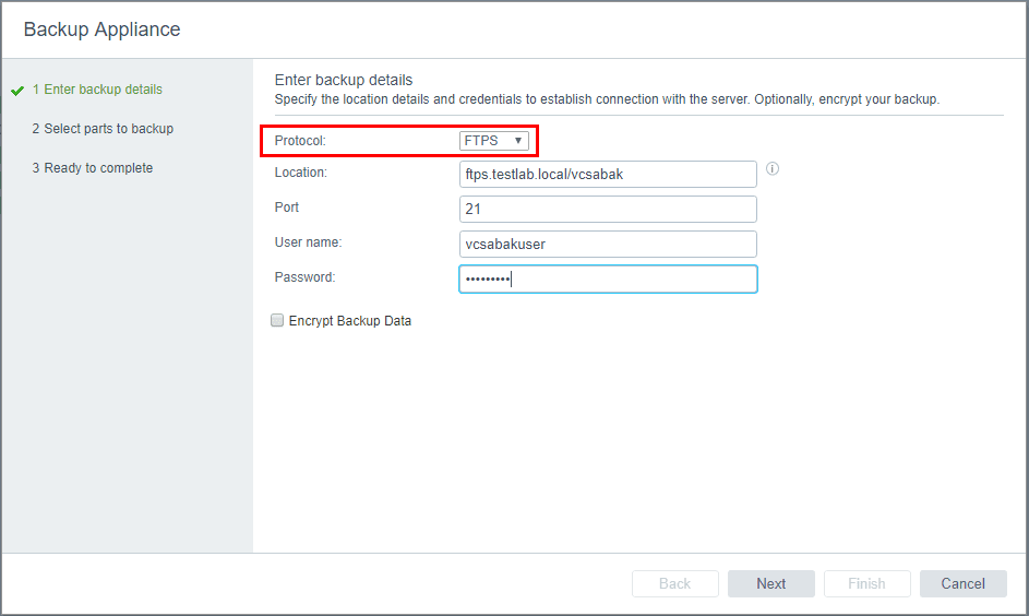 Backing up VMware VCSA 6.5 with FTPS