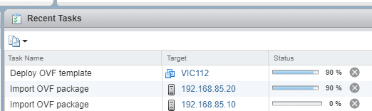 After completing the OVA deployment wizard, we will see the task kick off for the deploy of the new VIC 1.2.1 appliance.