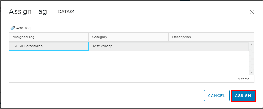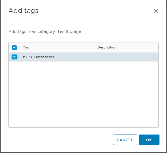 Now that we have our tag category and tags in place, we can tag our Datastore(s) with specific tags that we want to use to define our policy.