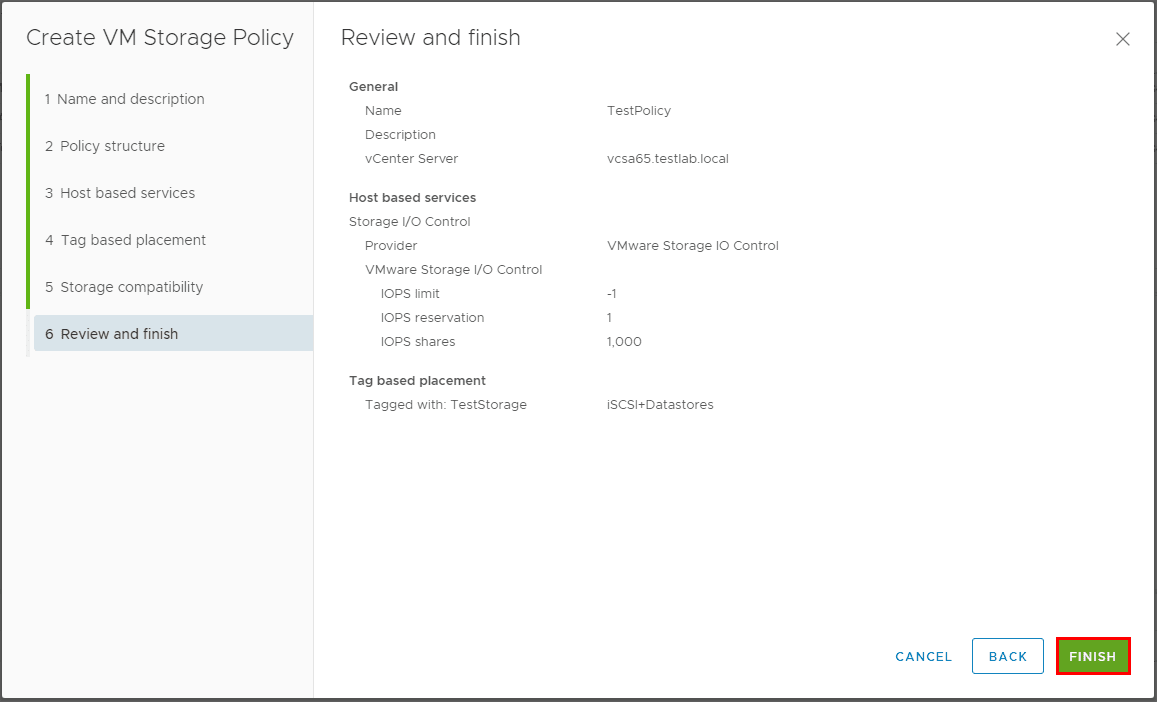 Since we tagged our storage earlier with the custom storage tag, we see it listed in theย Compatible storage.