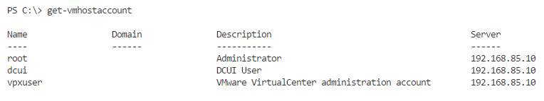 You can use PowerCLI to list the local VMware ESXi local user accounts: