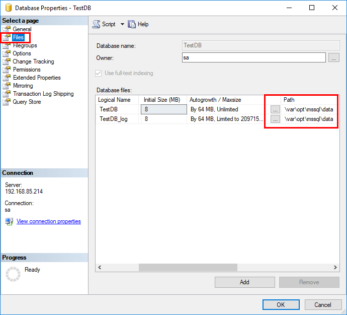 It is certainly interesting to see the file path for a database located atย varoptmssqldata.