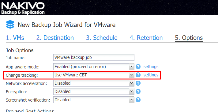 With vSphere 4.X, VMware introduced changed block tracking technology in vSphere data protection APIs.ย Changed block tracking or CBT is a powerful technology when it comes to efficient backups.ย After taking a full backup of a virtual machine, CBT allows backup solutions to take advantage of the built-in ability using CBT of only copying over the โchanged blocksโ since the last backup iteration.ย CBT keeps a map of the blocks that have changed in the VMDK itself.ย We can see the tremendous advantage and benefit this would have with both backups and replication.ย The changed blocks in a very low activity VM may be miniscule as opposed to having to copy over a full backup of a VM each time a backup iteration happens.ย NAKIVO Backup & Replication fully utilizes changed block tracking for both backups and replication.