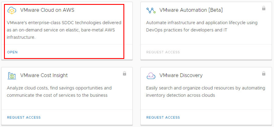 Below, choosing the VMware Cloud on AWS option.