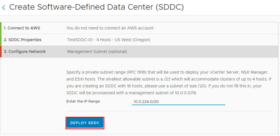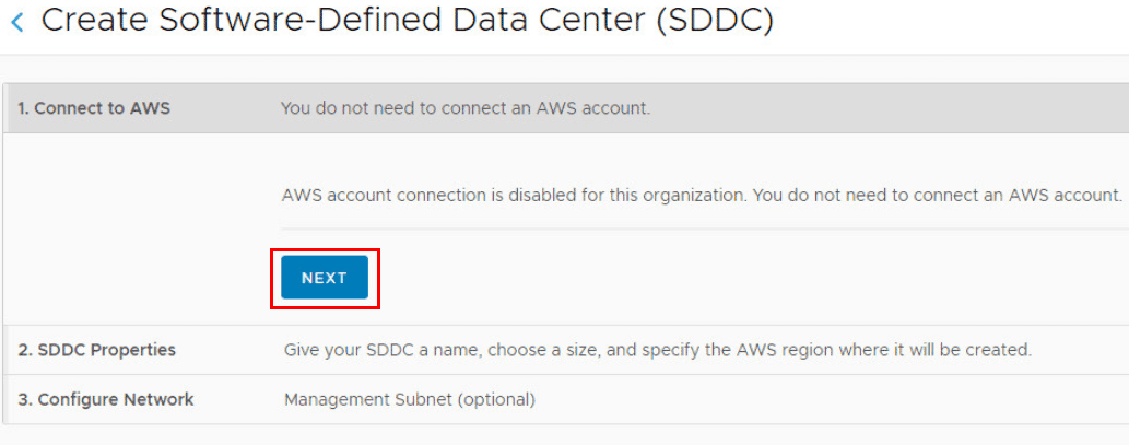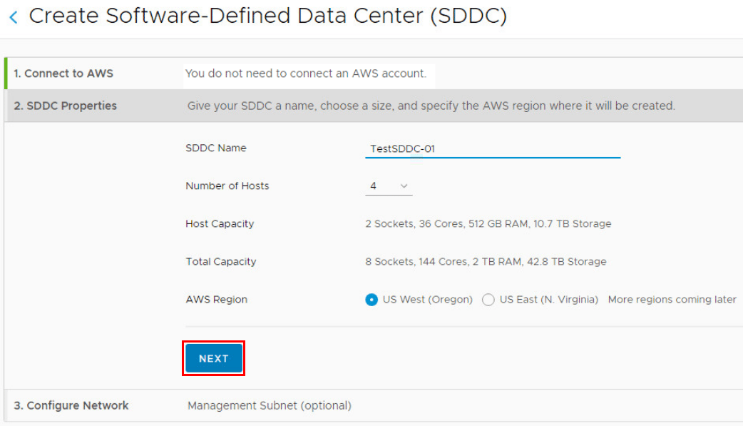 When choosing the VMware Cloud on AWS lab, you start from the standpoint of creating a new SDDC.