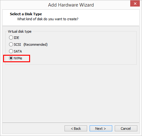 Add a New NVMe Hard Disk in VMware Workstation 14