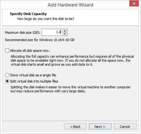 Again, I am creating a tiny new 1GB disk.