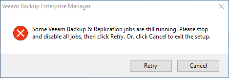 Make sure you have paused or disabled jobs before kicking off the installation or you will receive the below error.