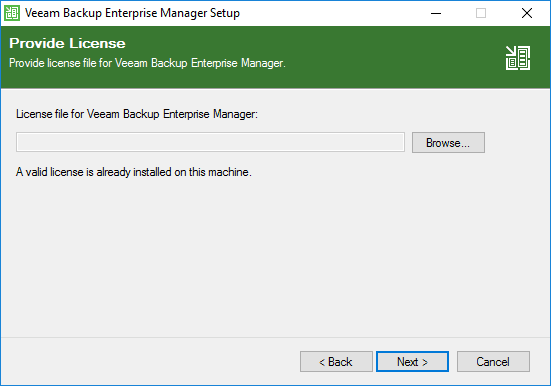 If you are installing Veeam Backup Enterprise Manager on a Veeam Backup & Replication server you will see the license is detected as already installed.