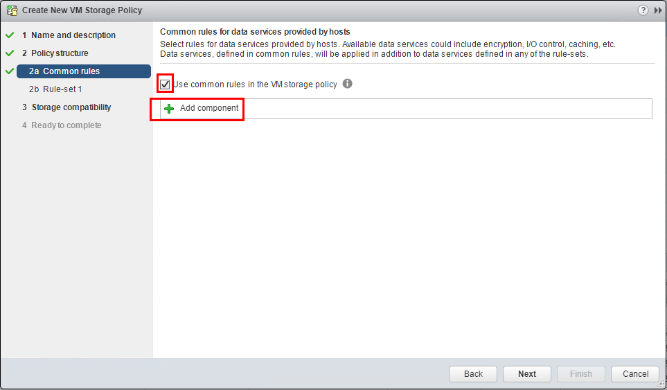 Under the Policy structure >> Common rules check the box and click the Add component button.