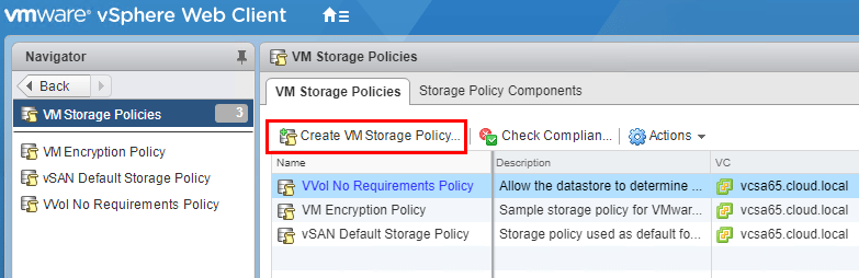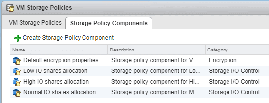 Below as shown, the Default Storage Policy Components that are configured out of the box.