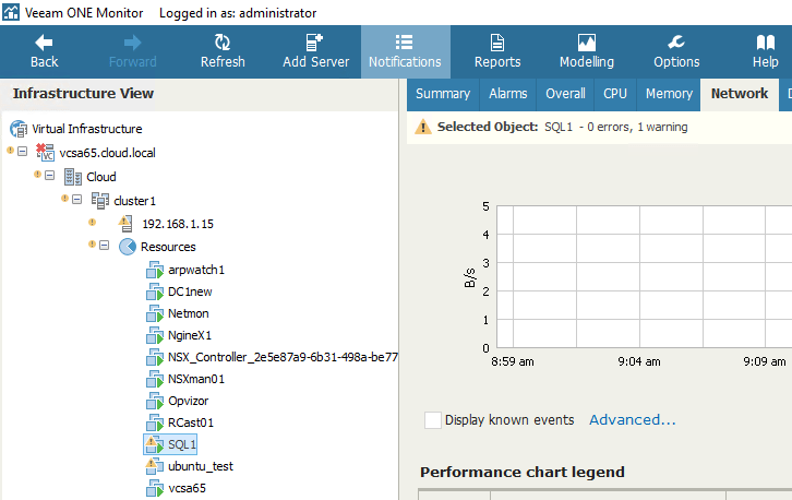 With Veeam One you have the available performance metrics for various virtual machines such as an overall view, CPU, memory, network, datastore, virtual disks, tasks and events, etc.