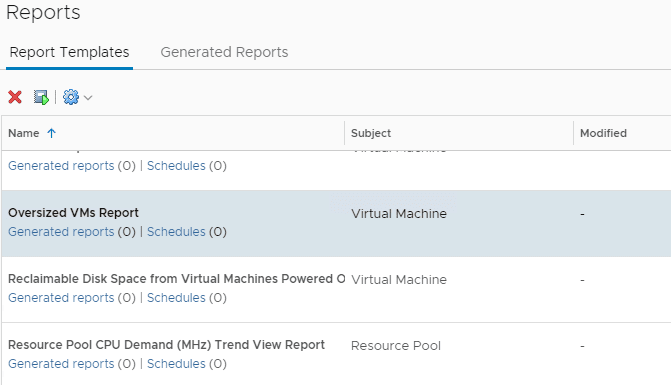 A look at some of the reports available (only showing a couple below). Note the Oversized VMs Report.